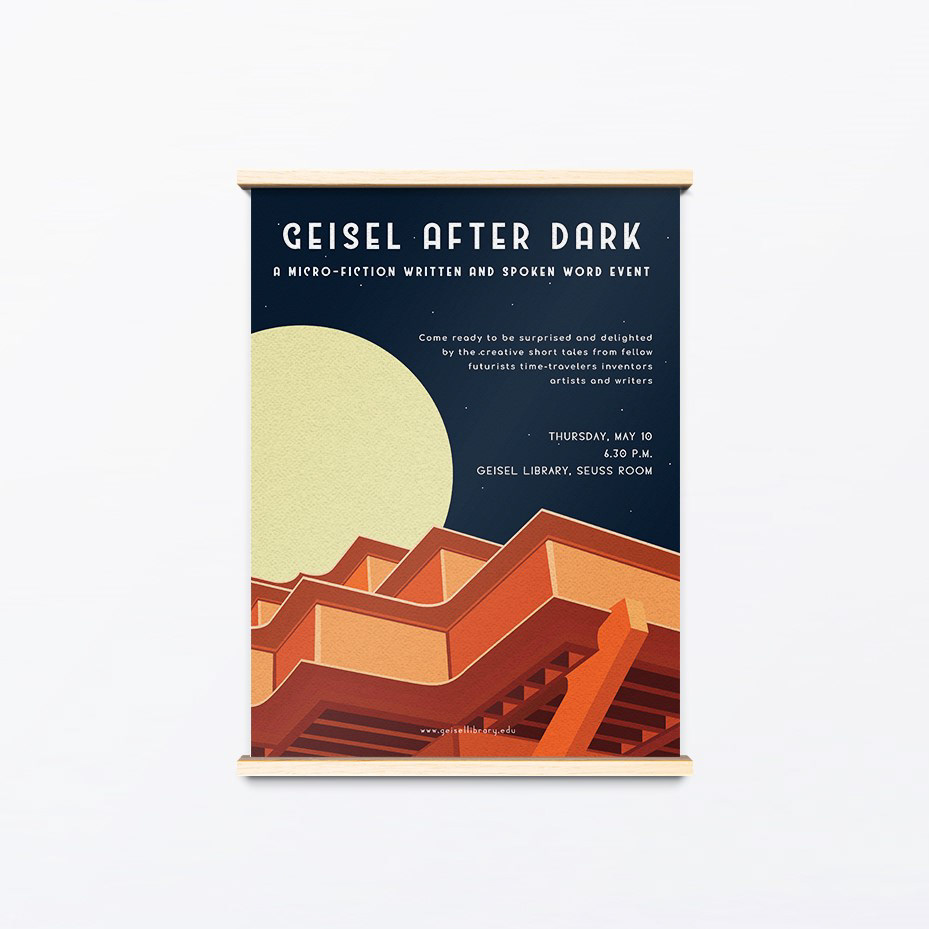 Incorporating three different display style typefaces with artwork to create a captivating, imaginative and legible event poster for a Typography course